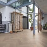 Met een toplaag van 3 mm biedt de Beverly Hills visgraat parketvloer een indrukwekkende stevigheid. De structuur van de plank valt binnen de klasse rustiek A/B, wat betekent dat de vloer een charmant rustiek patroon vertoont. Door deze vloer in een visgraatmotief te leggen, geef je een eigentijdse twist aan de warme en rijke uitstraling van parket. Dit alles wordt aangeboden met een uitstekende kwaliteit en een zeer gunstige prijsstelling.