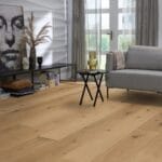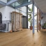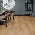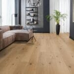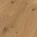 Deze parketvloer kenmerkt zich door zijn matte uitstraling en rustiek karakter. De aanwezigheid van noesten op de planken brengt de vloer tot leven en geeft hem een natuurlijke en robuuste uitstraling. Vervaardigd uit Europees eikenhout, een van de meest bekende en geliefde houtsoorten, biedt deze vloer een tijdloze charme. Met een toplaag van maar liefst 4 mm behoort deze parketvloer tot de sterkste binnen ons assortiment.