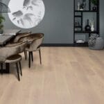 Deze prachtige parketvloer kenmerkt zich door zijn matte uitstraling en rustieke karakter. De aanwezigheid van noesten op de planken brengt de vloer tot leven en geeft een natuurlijke en robuuste uitstraling. Gemaakt van Europees eikenhout, een van de meest bekende en populaire houtsoorten, biedt deze parketvloer met een toplaag van maar liefst 4 mm een ongeëvenaarde stevigheid. Het is dan ook een van de sterkste parketvloeren binnen ons assortiment.