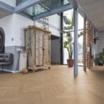 De Reseda visgraatvloer is een trendy keuze met zijn unieke vierzijdige V-groef, waardoor de vloer een opvallend effect krijgt. Wat deze vloer echt bijzonder maakt, is dat hij ook geschikt is voor gebruik op trappen. Bovendien is hij verkrijgbaar in een onbehandelde variant, waardoor je de vrijheid hebt om de vloer naar wens af te werken. Hierdoor kun je een rustig dessin creëren voor een landelijk interieur, maar ook een robuuste uitstraling voor een industrieel interieur.