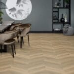 Een Hongaarse punt vloer met rustige en strakke uitstraling in de kleuren naturel en beige, dat is onze pvc vloer Yup Collection Chevron. Door zijn natuurgetrouwe structuur (EIR) haast niet van echt hout te onderscheiden, maar met de voordelen van een pvc vloer. Geniet van de robuuste uitstraling van deze pvc vloer in jouw interieur.